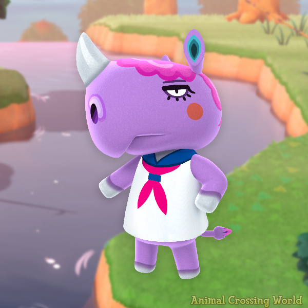 Happy home designer.her name is a play on rhinoceros. likewise, her japanese name is a play on sai, meaning rhinoceros.
